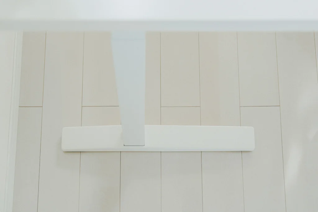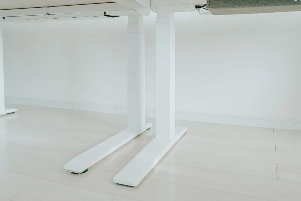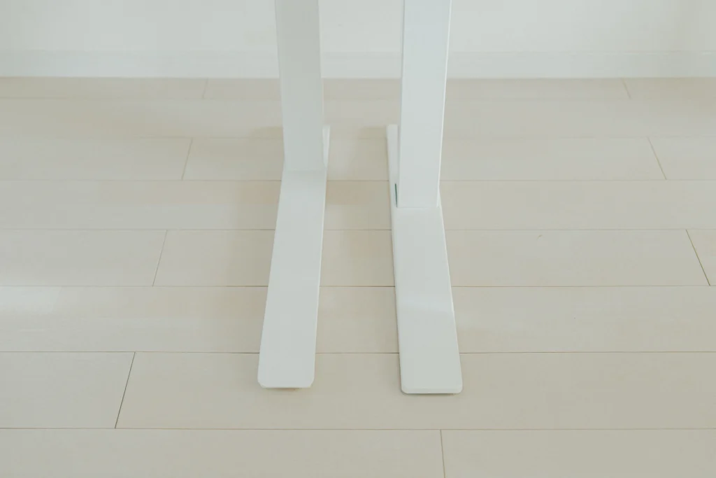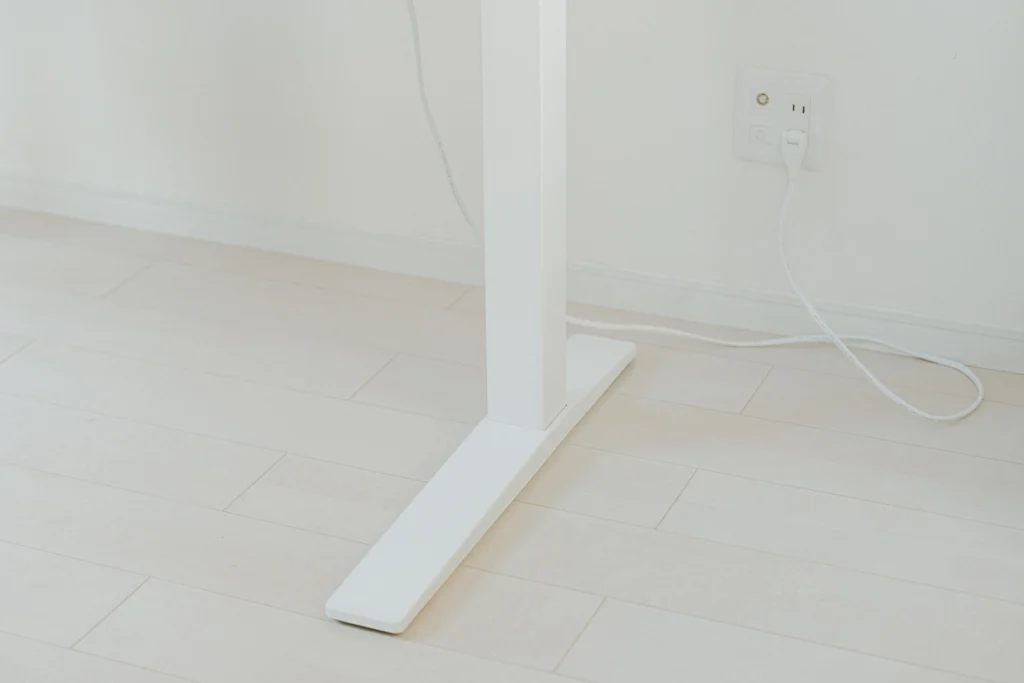 だけど、電動昇降デスクってとにかく脚がゴツく見えるんですよね。いかにも業務用って感じで。