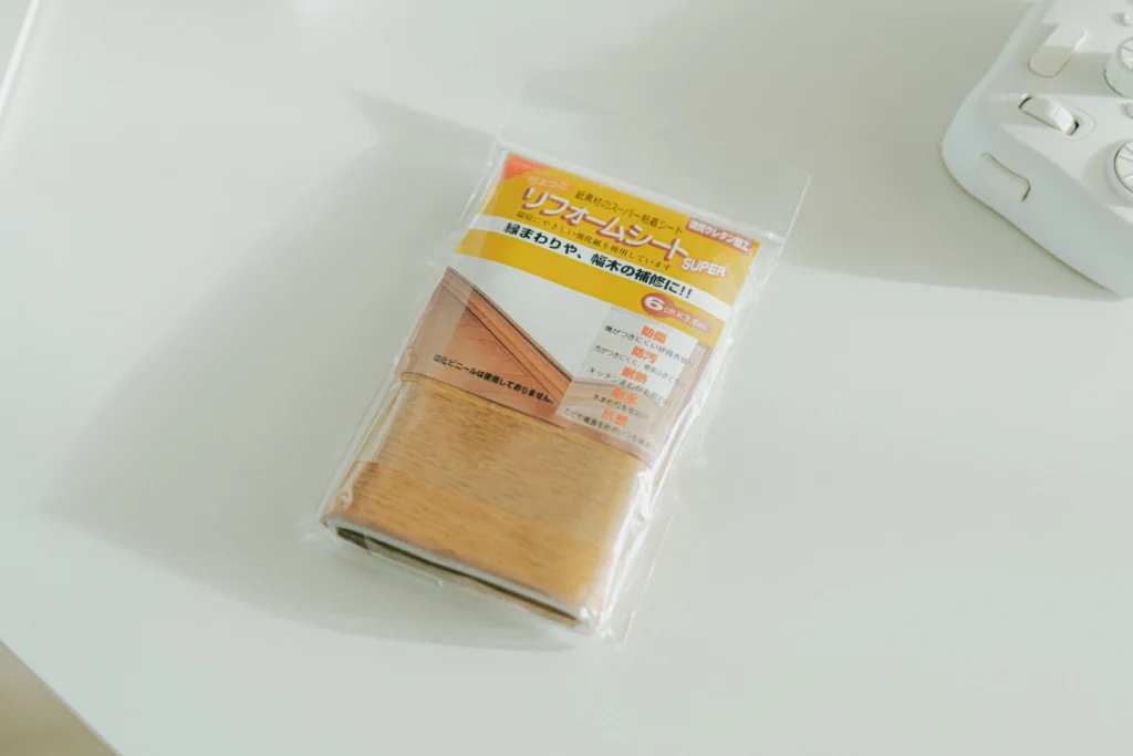 そこで、この木目調のリメイクシートを天板の側面に貼ってみたんですが、これが想像以上に良い仕上がりで。